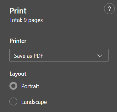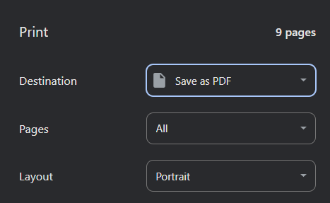 You'll have a choice between printing the complete report or using the checkboxes to select which parts to include in a custom report file. Once you've clicked either "Print Complete Report" or "Print Custom Report," your browser's print dialoge box will pop up. Using the first dropdown menu, which might be called "Destination" or "Printer" depending on your browser, select "Save as PDF."